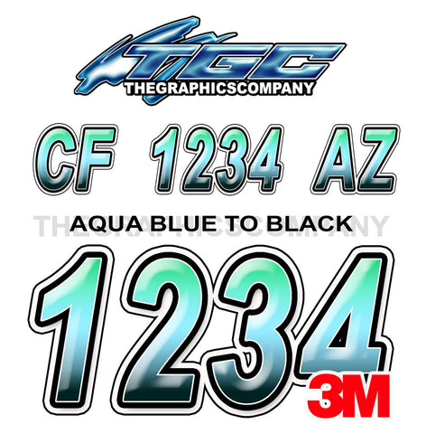 Aqua Blue to Black Boat Registration Numbers