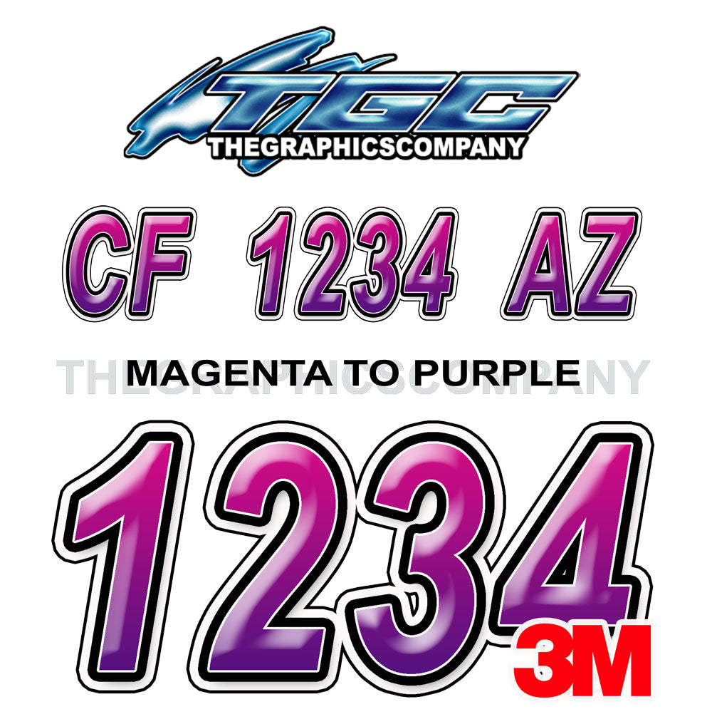 Magenta to Purple Bevel Boat Registration Numbers